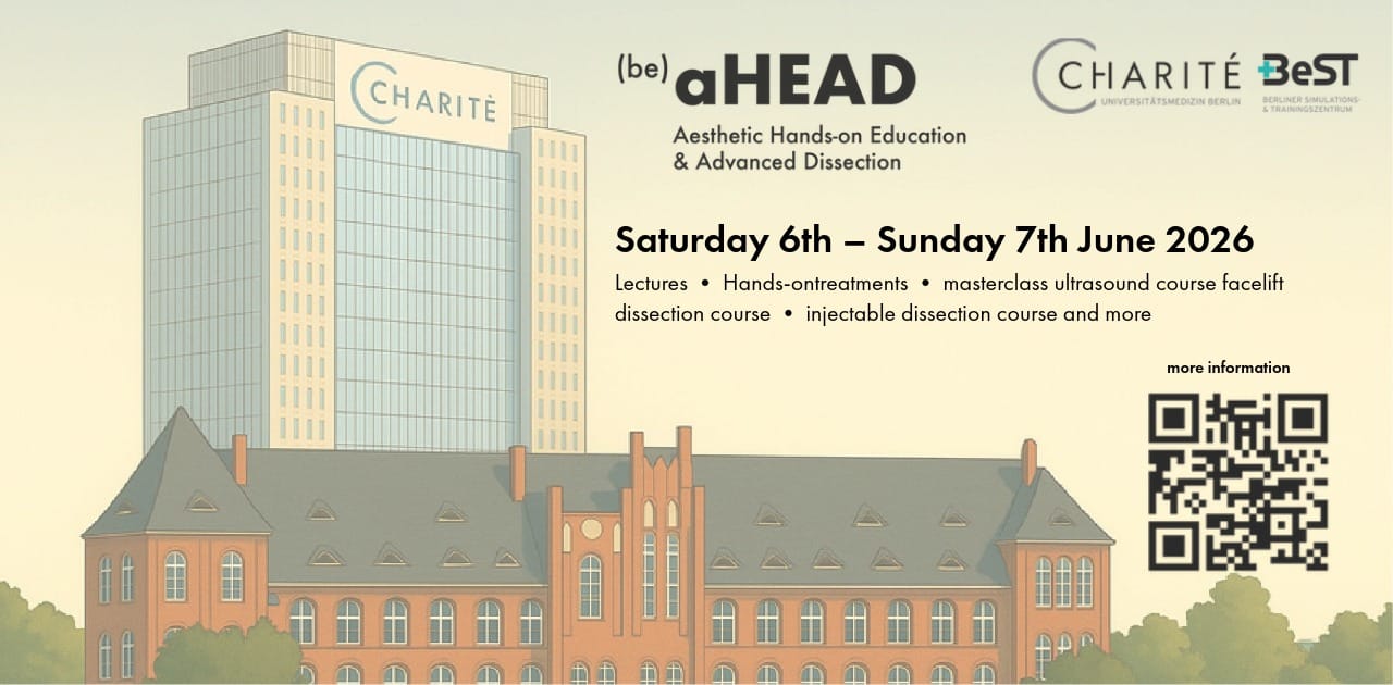 Der aHEAD Congress 2026 bietet eine einmalige Chance, Anatomie und ästhetische Medizin direkt in den historischen Anatomiesälen der Charité – der renommiertesten Universitätsklinik Europas – zu erleben. Dieser neuartige Kongress verbindet intensives Präparieren an humanen Präparaten mit modernsten ästhetisch-chirurgischen Techniken und setzt damit neue Maßstäbe im Hands-on-Training.